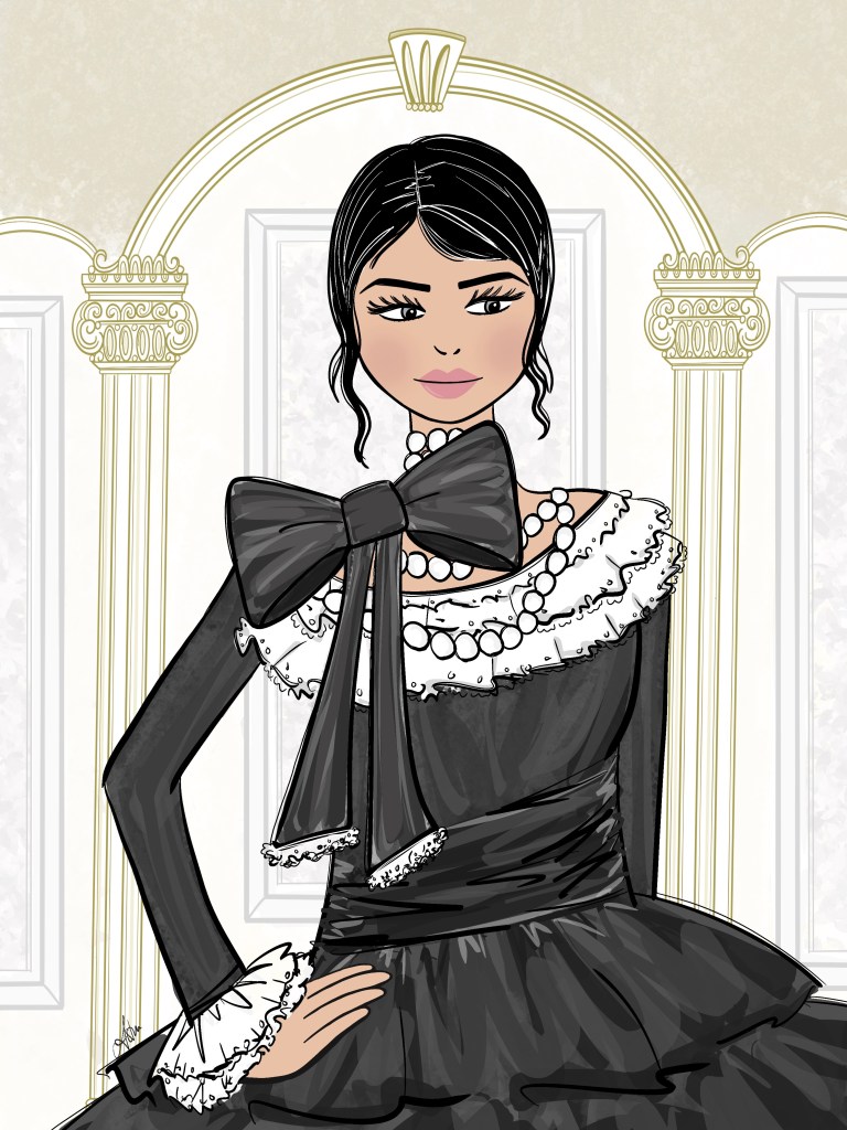 I create high fashion illustrations with a touch of elegance and class. I absolutely love pearls, crowns and little black dresses. You will often find them throughout my work.
